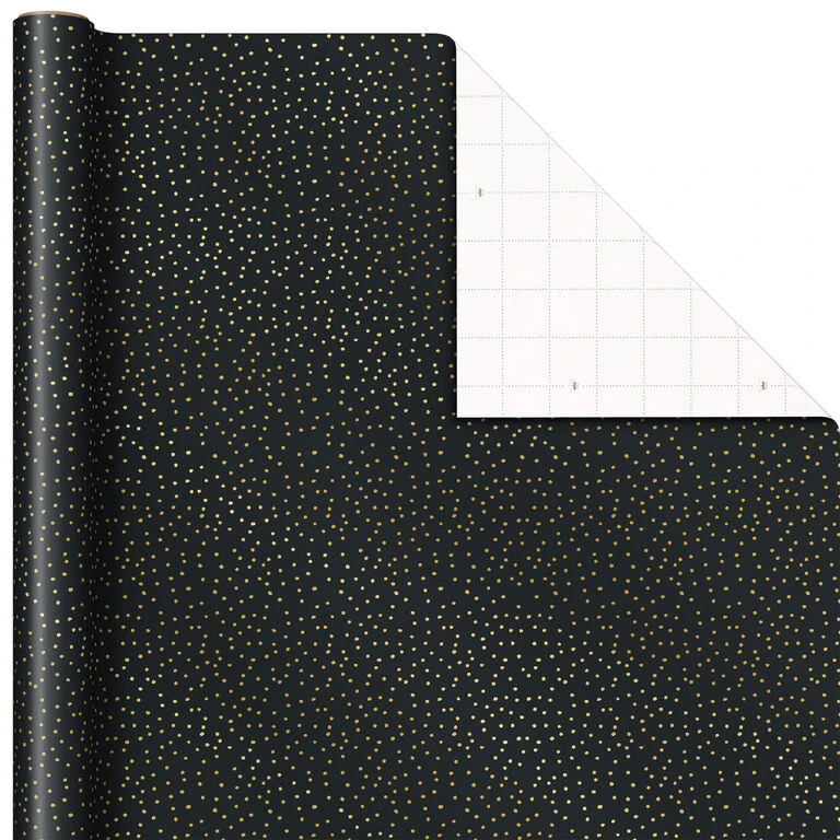 - Pack includes 3 holiday wrapping paper rolls in assorted designs: snowmen on black, gold grid lines on white and snow specks on black.