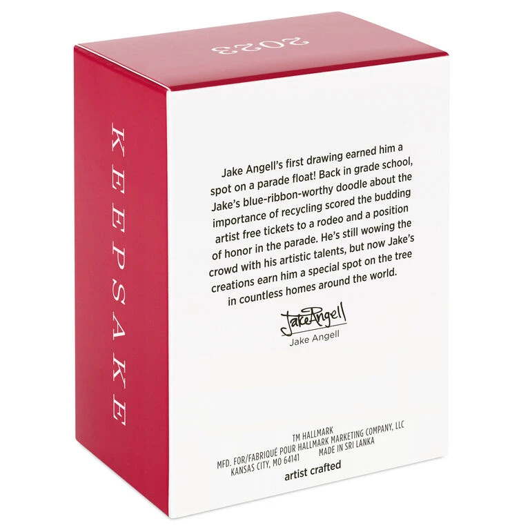- Additional Details: Artist crafted by Jake Angell. Plastic Christmas tree ornament.